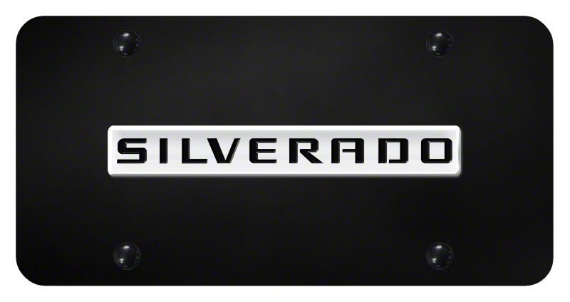 Stylish Silverado-Themed License Plate. The License Plate with Silverado lettering adds a unique and personalized touch to your vehicle. Featuring a bold design, this plate enhances the front or rear of your truck with a clean and polished look.