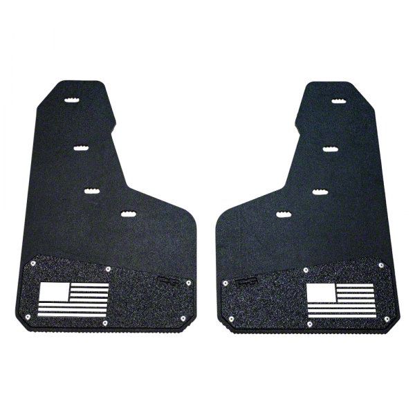 Feature-Packed Mud Flaps. Conquer the off-road in style with the Merica Mud Flaps (Rear, White). This pair of rear mud flaps have a debossed color backing with a hot-stamped white flag design. It’s stiff and will retain its shape no matter what you throw at it but is also flexible when needed. It comes with Anti-Spray Technology inside the flap that is designed to push away mud, water, debris, snow, and slush to the ground shielding the body of your Truck/SUV or anything it is towing.