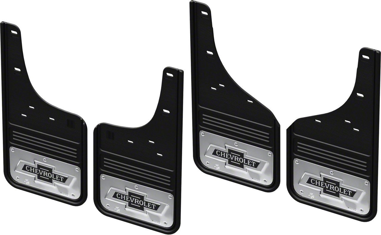 This Chevrolet 100 year Bowtie logo Gatorback mud flap set for the Chevrolet Silverado 2500 HD and Chevrolet Silverado 3500 HD (single rear wheel) is designed for a perfect fit. The flaps install inside the wheel well, while also replacing the factory splash guards that came from the factory. The finshing caps will give the truck a unique from the factory look. The Gatorback series mud flaps are the industries highest quality heavy duty mud guards! The rugged design and quality finish of these mud flaps make the perfect compliment to your truck. Featuring a 1/2" thick rubber flap, these mud flaps are sure to impress while they protect your investment.The bowtie logo is officially licensed ensuring it looks perfect and is die stamped into the stainless steel plate with a hand applied vinyl overlay, it measures 10 1/4" x 5". You will appreciate the attention to detail in these flaps.Installation is made simple featuring no body drilling to install using factory exisiting screws. Installation takes about 15 mins per flap and you can use tools you have at home. The Gatorbacks install flush to the inside of the wheel well so they work with step bars, power boards or side steps. The mudflaps also feature a lifetime warranty on the rubber portion of the flap. If the flap comes off the truck or is damaged to due to normal wear and tear, let us know and we will send you a replacement piece of rubber at no charge.Manufacturer Warranty-Gatorback mudflaps are backed by a Limited lifetime warranty. This warranty covers rubber replacement (ex- tear offs) for the lifetime of the product to the original owner. It does not cover damage caused by abuse, or regular wear and tear on brackets, plates, or mounting hardware.