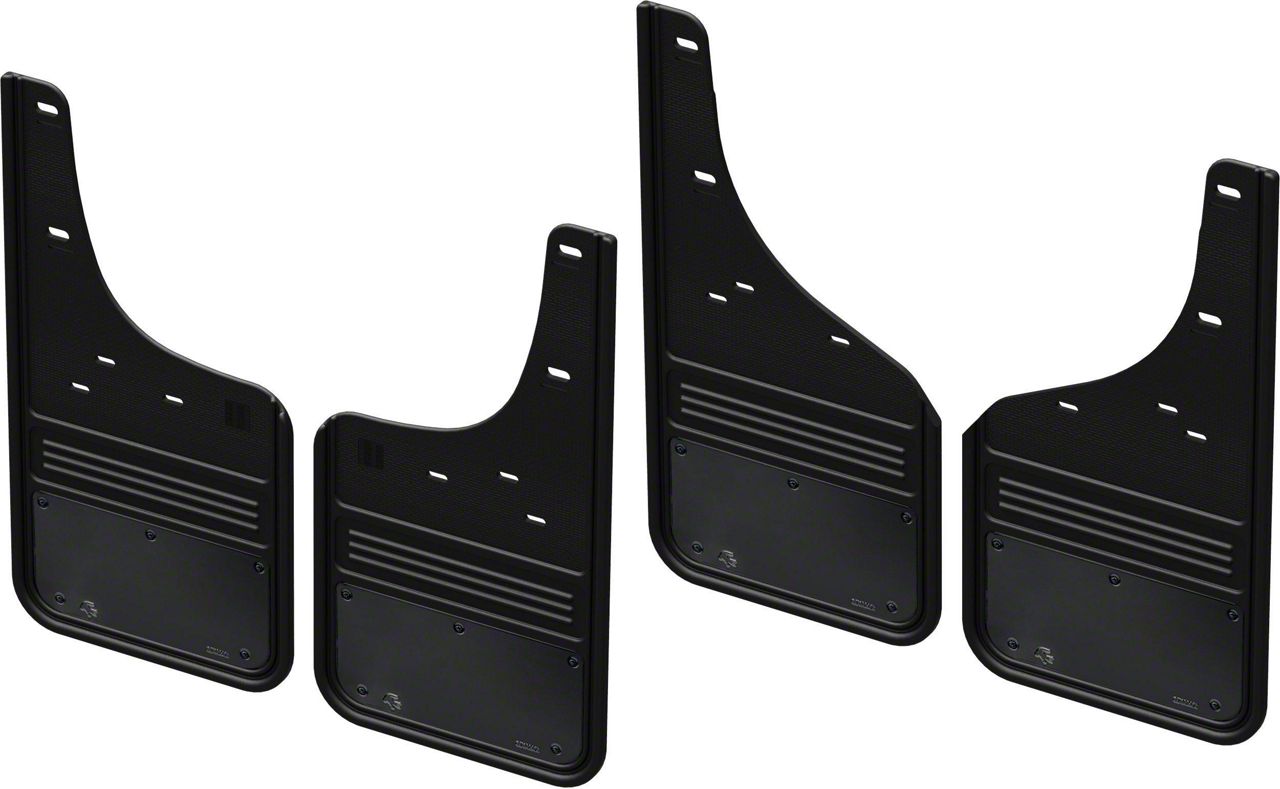 Includes (4)12" wide mud flaps (2 driver/2 pass)No body drilling required for installationFront tire coverage - 10" below fenderRear tire coverage - 11" below fenderOEM splash guards are removed with the finishing caps for a more finished lookLifetime limited warranty