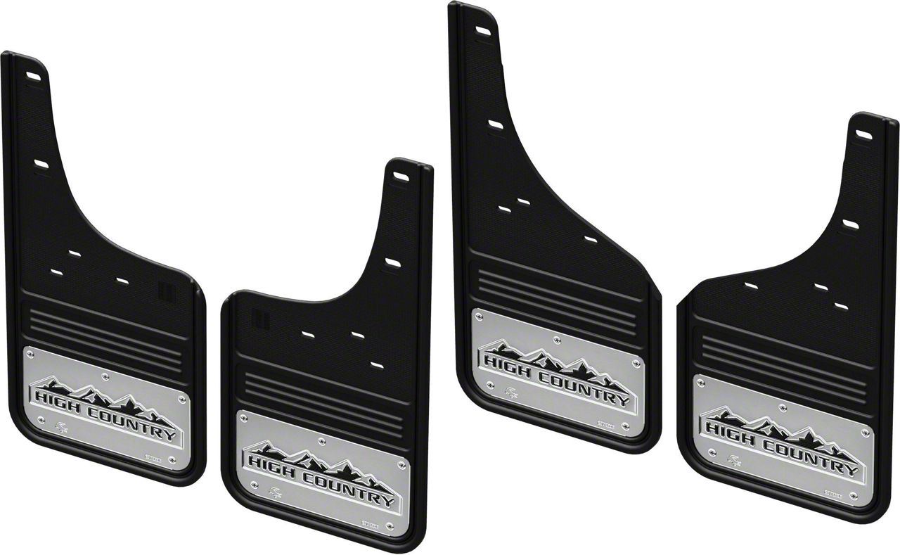No-Drill Mud Flaps with High Country Logo; Front and Rear (20-26 Silverado 2500 HD, Excluding ZR2)Find parts that fit my vehicle