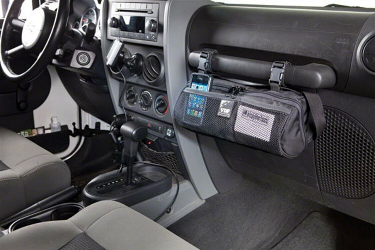 Multiple Storage Options. Strap it on behind your seat, roll bars, or even handle bars and keep everything you need, an arm reach away. With its tubular design, this Organizer zips open to show four compartments where you can put the essentials of every road trip. Snacks, gadgets, reading material, and even a water bottle. Digging around your luggage will now just be a thing of the past.