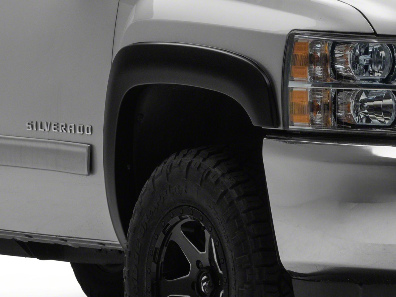 Bolder Exterior. Protect your Silverado 1500’s body from mud splash, sand, debris tossed by the tires with these Smooth Black Original Riderz Fender Flares. Aside from serving as shields, this set of fender flares also hide the unsightly pinch welds and the existing chips on your truck’s fender lips. Each piece exudes a tough and appealing ruggedness as it stylishly fits the contours of your truck’s wheel wells.