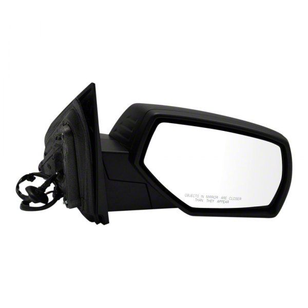 Premium Replacement Mirror. The Powered Heated Manual Folding Mirror with Temperature Sensor; Textured Black; Passenger Side is designed to restore your vehicle’s exterior mirror functionality and appearance. It provides electric adjustment and heating features to improve visibility in various weather conditions, enhancing safety and convenience. This part is specifically made for the passenger side and incorporates a temperature sensor to support efficient defrosting.