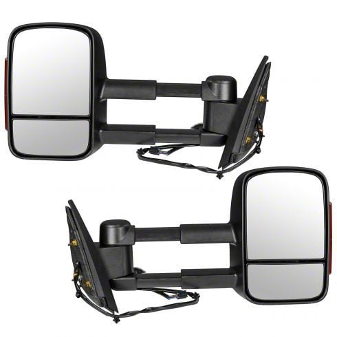 OEM Style Replacement Towing Mirrors. Replace your 2500 Silverado's cracked or broken towing mirrors with a brand new OEM style replacements. These manual telescoping, manual folding and power-operated towing mirrors are designed to replace the heated mirrors found on 2007-2014 Chevrolet Silverado 2500 HD models equipped with mirror mounted turn signals.