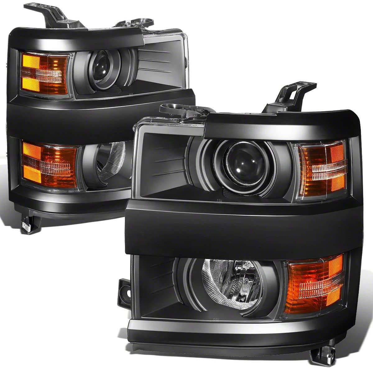 Fierce Style and Reinforced Illumination. Keep your nighttime driving safe by installing these new Black Projector Headlights with Amber Corners to replace your factory units. Using these headlights on your Silverado will make you see street signs and obstacles better because of the brighter and longer reach. The distinctive combination of black housings and amber corners also brings a bolder appeal to your truck’s front end.