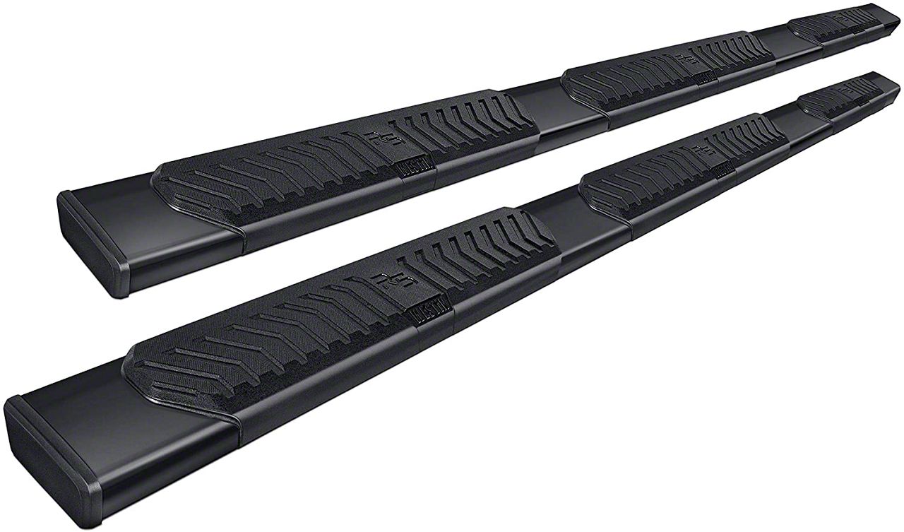Steel Construction. These R5 M-Series XD Wheel-to-Wheel Nerf Side Step Bars are manufactured from heavy duty steel for superior strength and rigidity. The Side Steps are then completed in a textured black powder coated finish for good looks and long lasting corrosion resistance. As part of the final assembly a set of rugged non-slip step pads are installed.
