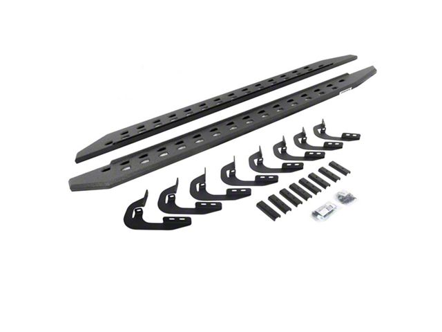 Description. The RB20 Slim Line Running Boards offer the same heavy duty toughness as the original RB Series, but with a slimmer design that fits tighter along the cab for increased ground clearance when off-roading. Constructed from 16-gauge zinc-coated galvanized steel, the Raptor-inspired boards were built to protect your panels from ?ying debris while providing a full-length step platform. The modern, bullet-stamped design is 5 1/2 inches across at its widest point (compared with 7 1/2 inches of the original RB20) and are offered in cab-length sizes that fit most popular trucks, Jeeps and SUVs. Available with a protective bedliner coating or textured black powder coat finish that carries a 5-year limited warranty.