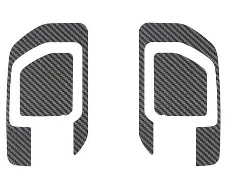 Construction and Appearance. This Rear Door Handle Surround Accent Trim undergoes a 3-layer construction. The first layer is a UV-doming resin that gives you a durable finish. Next is a mixture of substrates that provides the custom color. The final layer is a 3M adhesive that ensures the snug fit. These pieces have a raw carbon fiber appearance and are raised 1mm.