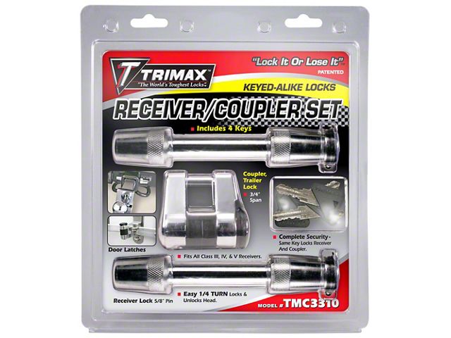 Construction and Appearance. Built with durable, high-quality materials, this set is made to withstand the elements and the demands of daily towing. The sturdy locks feature a rugged metal construction with a professional finish, ensuring long-lasting use and a clean, functional appearance. Both the 5/8-inch receiver locks and the 7/8-inch coupler lock are engineered for strength and resilience.