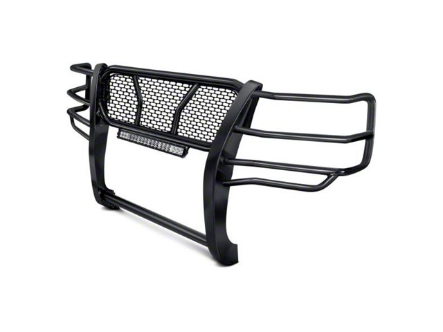 Aggressive Front Armor. Conquer the off-road rigors with full front protection by installing this Rugged Heavy Duty Black Grille Guard with 20-Inch LED Light Bar on your Chevrolet Silverado 2500HD. With its full-width front coverage and a full front grille guard, this bumper shields the most exposed parts of your truck against various off-road obstacles such as rogue animals, low-hanging branches, boulders, and tree stumps. This bumper truly offers ultimate protection and practicality while giving your truck an appealingly aggressive exterior.