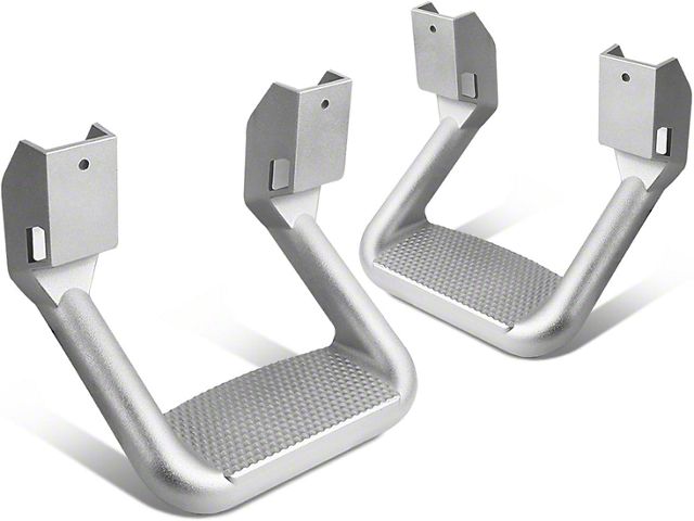 Construction and Appearance. Built from high-quality die-cast aluminum, these hoop steps combine strength with corrosion resistance. The polished silver surface offers a sharp look that complements a variety of vehicle styles, while the compact design makes them an unobtrusive yet practical upgrade.
