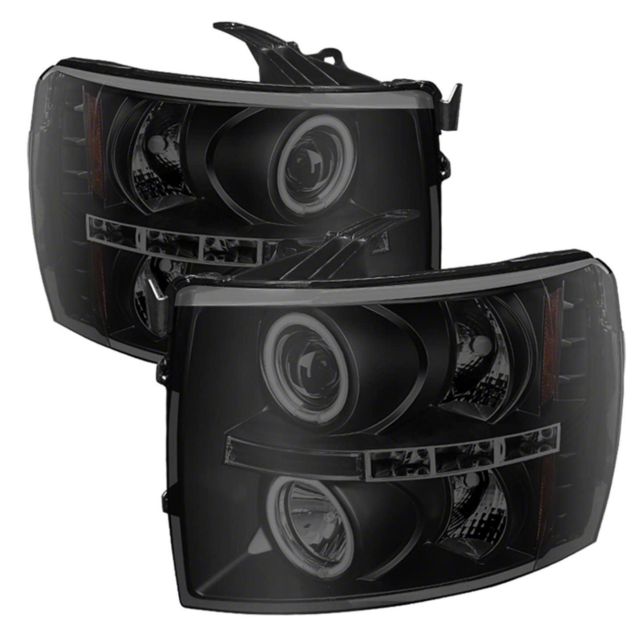 Application. These Signature Series CCFL Halo Projector Headlights with Black Housing and Smoked Lens are intended for use on all 2007 to 2014 Chevrolet Silverado 2500HD models.