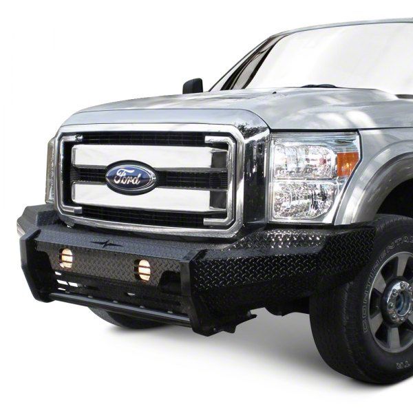 Construction and Appearance. Built from heavy-gauge smooth plate steel, this bumper is engineered for durability and long-term strength. The matte black powder-coated finish adds a clean, aggressive look while helping resist wear from weather and debris. Its frame-mounted design provides solid support, helping protect against bumps, hits, and other road damage while literally giving you a step up when accessing the engine bay or front of the truck.