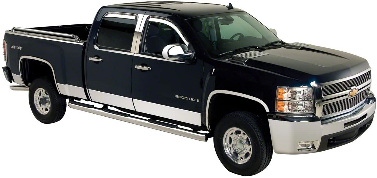 Application. This Putco Stainless Steel Rocker Panels fits 2015-2019 Chevrolet Silverado 2500 HD Crew Cab DRW Models with 8-Foot Long Box.