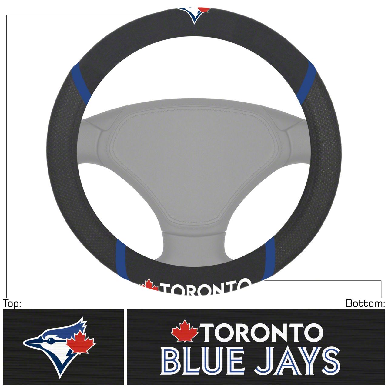 Steering Wheel Cover with Toronto Blue Jays Logo; Black (Universal; Some Adaptation May Be Required)