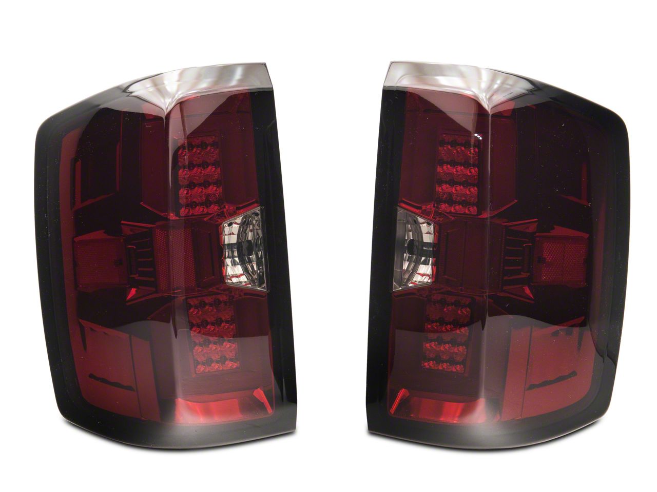 Stylishly Functional Tail Lights. Equip your Silverado with a powerful and striking illumination by installing these Red and Smoked LED Tail Lights. These tail lights significantly improve visibility for braking and directional indications. The distinctive red and smoked lenses also appealingly enhance your Silverado’s rear-end style.