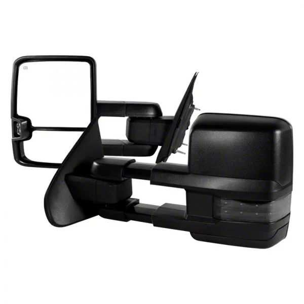 Factory Style. Made in the factory style for Chevrolet Silverado 2500 HD models, these Towing Mirrors are a perfect replacement to your standard stock side mirrors. Manually adjusted with a defrost function, these mirrors have an ABS plastic construction and have a smoked lens signal for added functionality.
