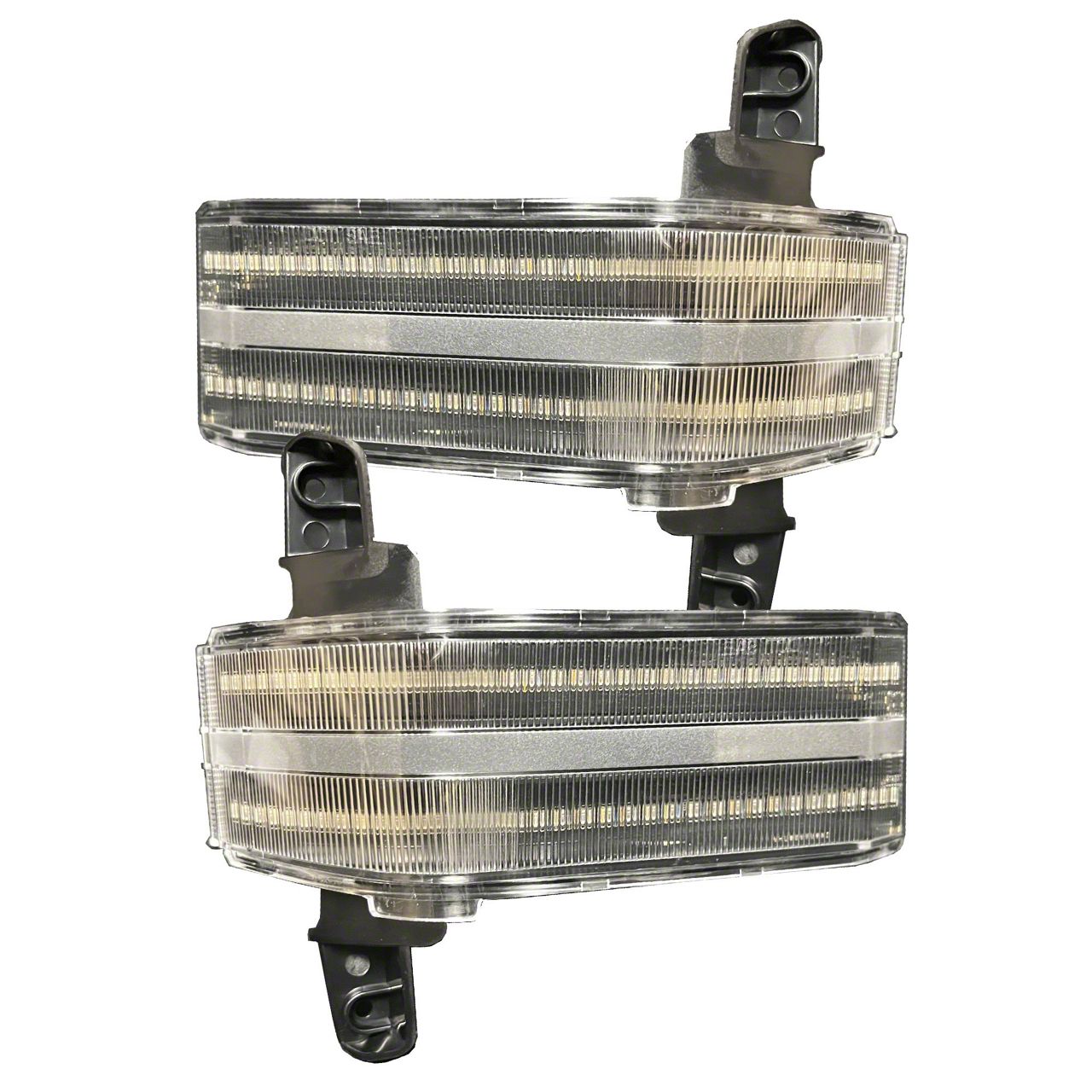 Application. This Towing Side Mirror Lenses with Scanning Clear Turn Signals (Smoked) fits all 2015-2019 Chevrolet Silverado 2500 HD models.