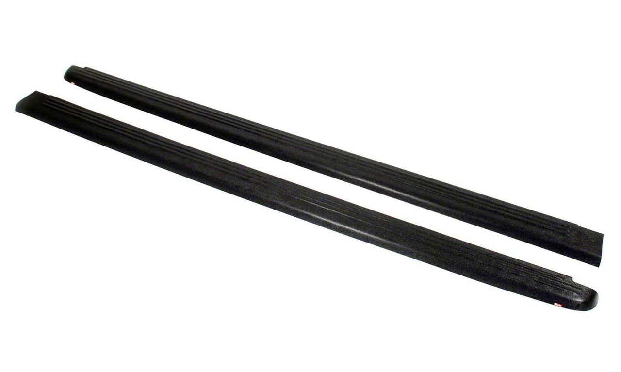 Installation. This truck bed side rail protector uses 3M tape to be installed. Please read these instructions before installation. Before removing red backing from tape, trial fit the bedcap. Take note of proper fit and center the stake pocket holes (if applicable). Apply pressure to top of bed cap to insure that all tape is properly seated. The adhesive requires 48 hours to fully cure. Avoid getting the vehicle wet until 48 hours after installation.