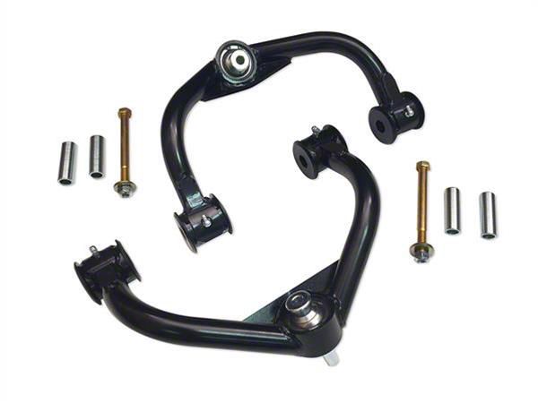 Description. Improve your lifted Chevy Silverado 2500HD suspension travel, performance and eliminate any binding that can be caused by factory ball joints with these high quality uni-ball upper control arms (UCA) from Tuff Country Suspension. Using teflon-lined uni-balls these control arm (a-arms) will give your Silverado 2500HD greatly improved suspension articulation while being considerable more durable and stronger than standard ball-joints. These control arms are designed specifically for vehicles with 2 to 4 inches of front lift and will restore proper geometry which will improve driving and handling characteristics. Includes polyurethane bushings and zerk fittings for simple lubrication.