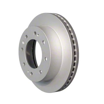 Construction and Appearance. Constructed from G3000 heat-flowed castings steel, the Vented 8-Lug Brake Rotor is tensile and hard, ensuring steady wear and a long lifespan. It features a rust and corrosion-resistant G-coating that enhances its durability and overall aesthetic appeal.