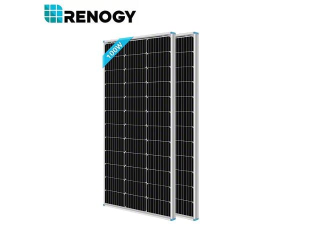 Description. High in power, compact in size, this Renogy 100 Watt 12 Volt Monocrystalline Solar Panel is the perfect option for any off-grid application. Ideal for RVs, motorhomes, cabins, marine areas, home backup power, and more. The panels feature lightweight aluminum frames and shatter-resistant glass, making them perfect for outdoor applications.