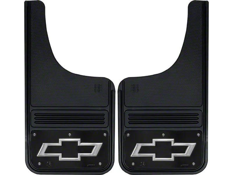 Robust Protection with a Touch of Style. These 12-Inch x 23-Inch Mud Flaps are engineered to shield your vehicle's lower body panels from debris and grime encountered during daily driving or off-road adventures. The substantial rubber construction offers flexibility and resilience, ensuring longevity even under demanding conditions. The integrated stainless steel plate, adorned with the iconic Black Bowtie logo, adds a distinctive aesthetic that complements your vehicle's appearance.