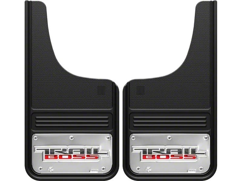 Ultimate Protection and Style. The 12-Inch x 26-Inch Mud Flaps with Trail Boss Logo provide excellent protection for your vehicle's paint against scratches, dirt, and road debris. Suitable for both front and rear placement, these mud flaps offer a custom fit for your vehicle.