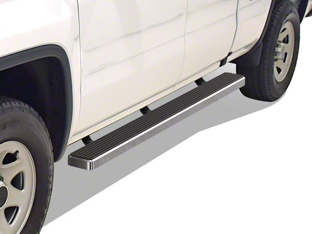 Style and Function. Upgrade the appearance of your Chevrolet Silverado 3500 HD Extended/Double Cab with a set of 5-Inch iStep Running Boards. These great looking iStep Running Boards furnish a convenient 5-Inch wide step for easy entry in and out of your 3500 Silverado while giving it a clean, modern appearance. As an added bonus, these Running Boards will help to protect your vehicle's body and paint from stones and road debris that get kicked up while driving.