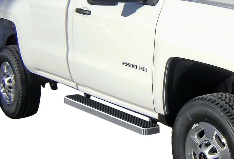 Style and Function. Upgrade the appearance of your Chevrolet Silverado 3500 HD Regular Cab with a set of 5-Inch iStep Running Boards. These great looking iStep Running Boards furnish a convenient 5-Inch wide step for easy entry in and out of your 3500 Silverado while giving it a clean, modern appearance. As an added bonus, these Running Boards will help to protect your vehicle's body and paint from stones and road debris that get kicked up while driving.