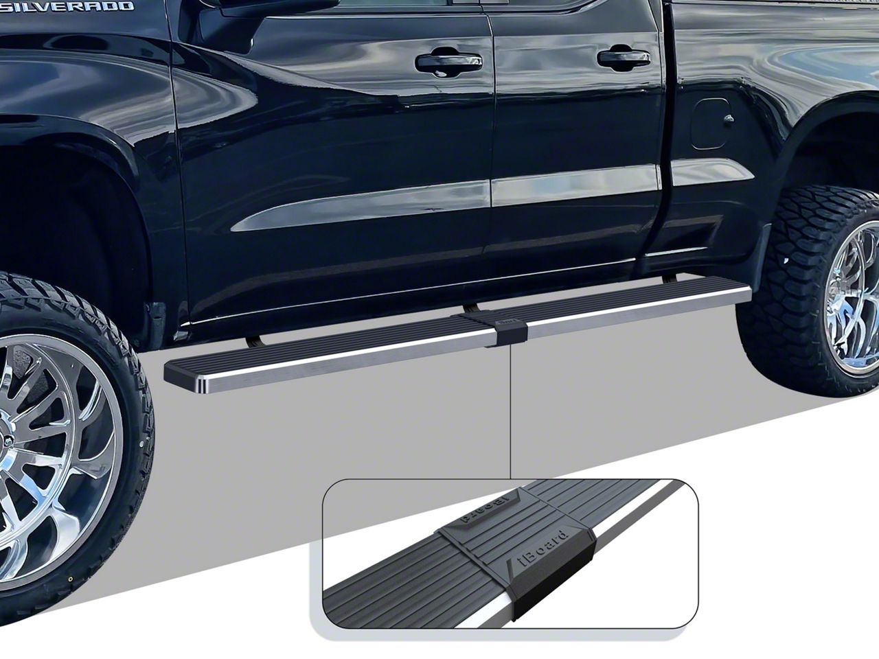 The iStep 6-inch wheel to wheel side step/running board is constructed with durable stainless steel. Its surface is fully covered with a ribbed step pad that enhances traction while getting in and out of the vehicle, providing a secure and sturdy access. The side step's simplistic and sleek design gives your vehicle an upgraded appearance. Additionally, the iStep can support up to 300 lbs due to its heavy-duty construction. The product comes with all the necessary mounting hardware, brackets, and an installation manual.