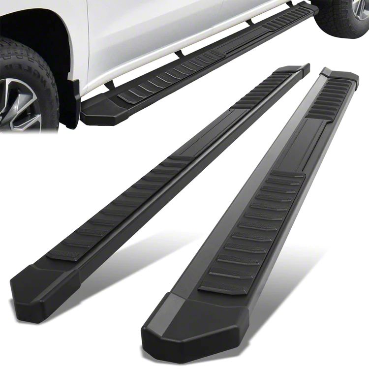 Durable and Protective Design. Made from durable steel, these running boards are built to last, offering protection to the sides of your vehicle while withstanding the rigors of daily driving. The full-length design not only provides ample stepping space but also protects your truck’s body from road debris, ensuring it stays in top condition.