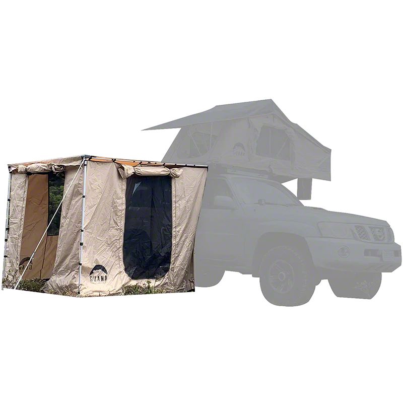 High-Quality Materials. Crafted from durable ripstop 420D polyester canvas in a stylish tan color, and featuring a robust 1000 PVC floor material, the Almendro Awning Room is built to last. Waterproof and equipped with doors and windows for easy access, it ensures a comfortable outdoor living experience. Setup and takedown are a breeze, allowing you to spend more time enjoying the great outdoors.