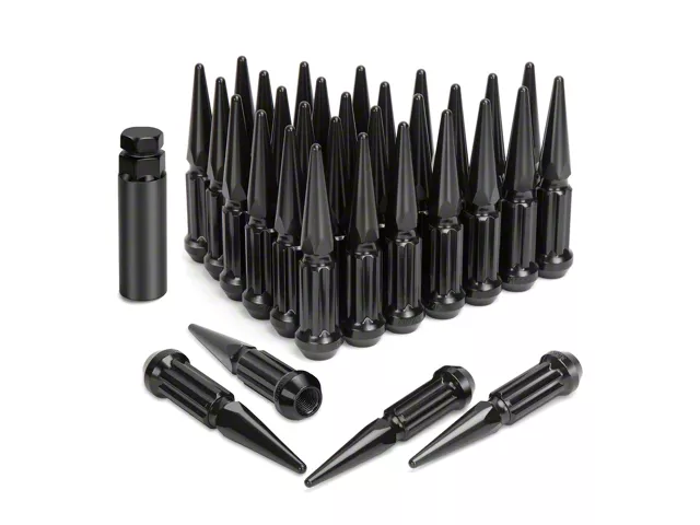 Superior Strength and Durability. Give your truck a bold and aggressive edge with these Black Extended Spiked Lug Nuts. This set of 32, sized M14x1.5, is designed for truck owners who want to make a statement with both style and strength.
