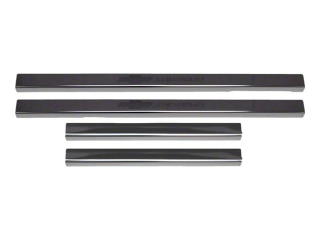 Stylish And Durable. This door sill panel set is made in the U.S. from corrosion-resistant stainless steel by an industry-leading truck accessory manufacturer. It has a custom-fit construction to guarantee a precise fit and flawless look. The smooth black powder-coated finish is elegant and durable, matching any Silverado, while the Chevrolet logo is etched rather than printed for lasting appeal.
