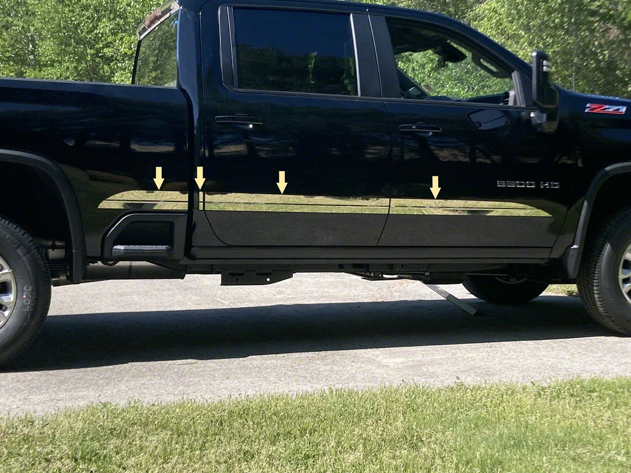 Installation. Putting this Body Side Molding Accent Trim on your Silverado 3500 HD Crew Cab is easy and requires no drilling.