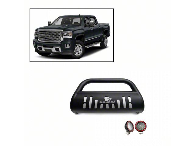 Description. Black Powder Coated Bull Bar Kit (BB004919A-SP-PLFR) by Black Horse Off Road compatible with 2011-2019 Chevrolet Silverado 2500 HD 3500 HD / GMC sierra 2500 HD 3500 HD