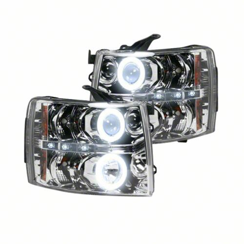 Application. These CCFL Halo Projector Headlights with Chrome Housing and Clear Lens are intended for use on all 2007 to 2014 Chevrolet Silverado 3500 HD models.