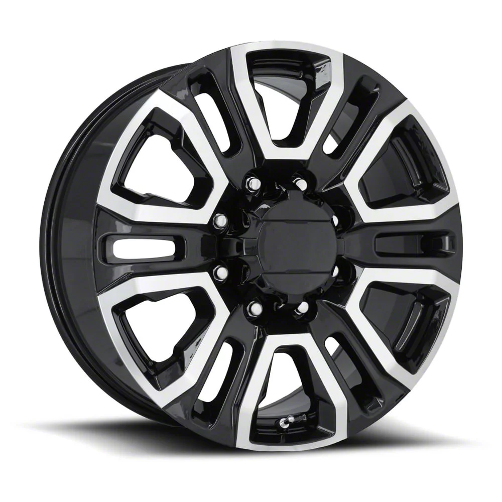 Application. This Denali 2500 Replica Black Machine Face 8-Lug Wheel; 20x8.5; 47mm Offset, with a backspace of 6.6 Inch, 167.6mm; and bolt pattern of 8 x 180mm (8 x 7.08661-Inch), is designed to fit 2020–2026 Silverado 3500 HD SRW models. Sold individually.