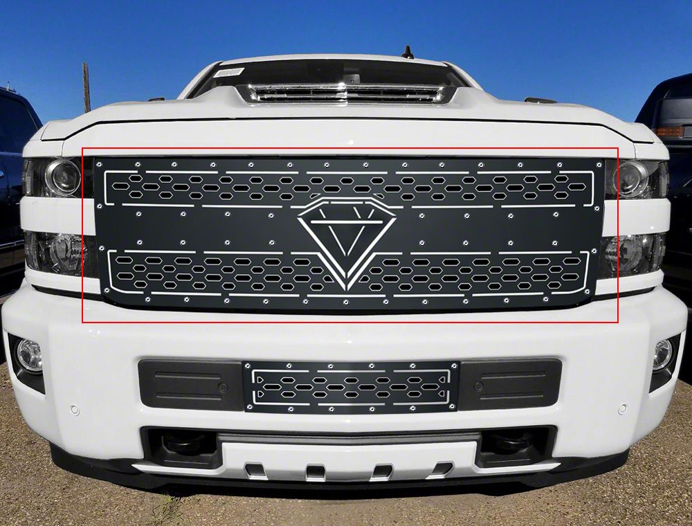 Application. This Double Layer Upper Grille Insert in Black fits all 2015-2019 Chevrolet Silverado 3500 HD models.