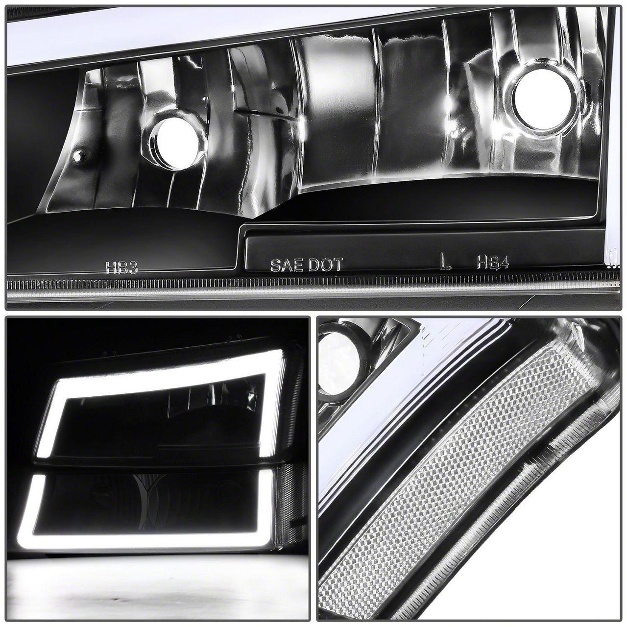 Dual C-Bar LED DRL Headlights with Clear Corners; Black Housing; Clear Lens (03-06 Silverado 3500 HD)Find parts that fit my vehicle