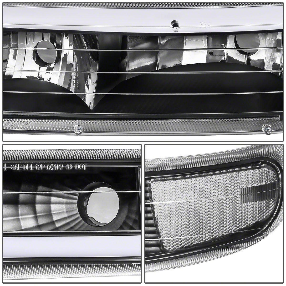 Construction and Appearance. Crafted from premium-grade materials, these headlights feature a high-strength Black housing and impact-resistant clear lenses. The black finish adds a sleek appearance, while the clear lenses ensure optimal light output and durability.