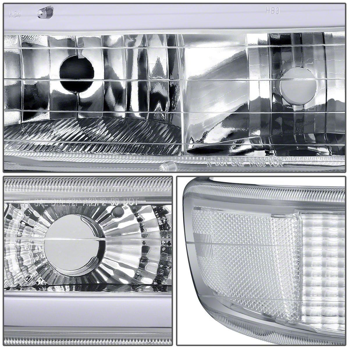 Dual C-Bar LED DRL Headlights with Clear Corners; Chrome Housing; Clear Lens