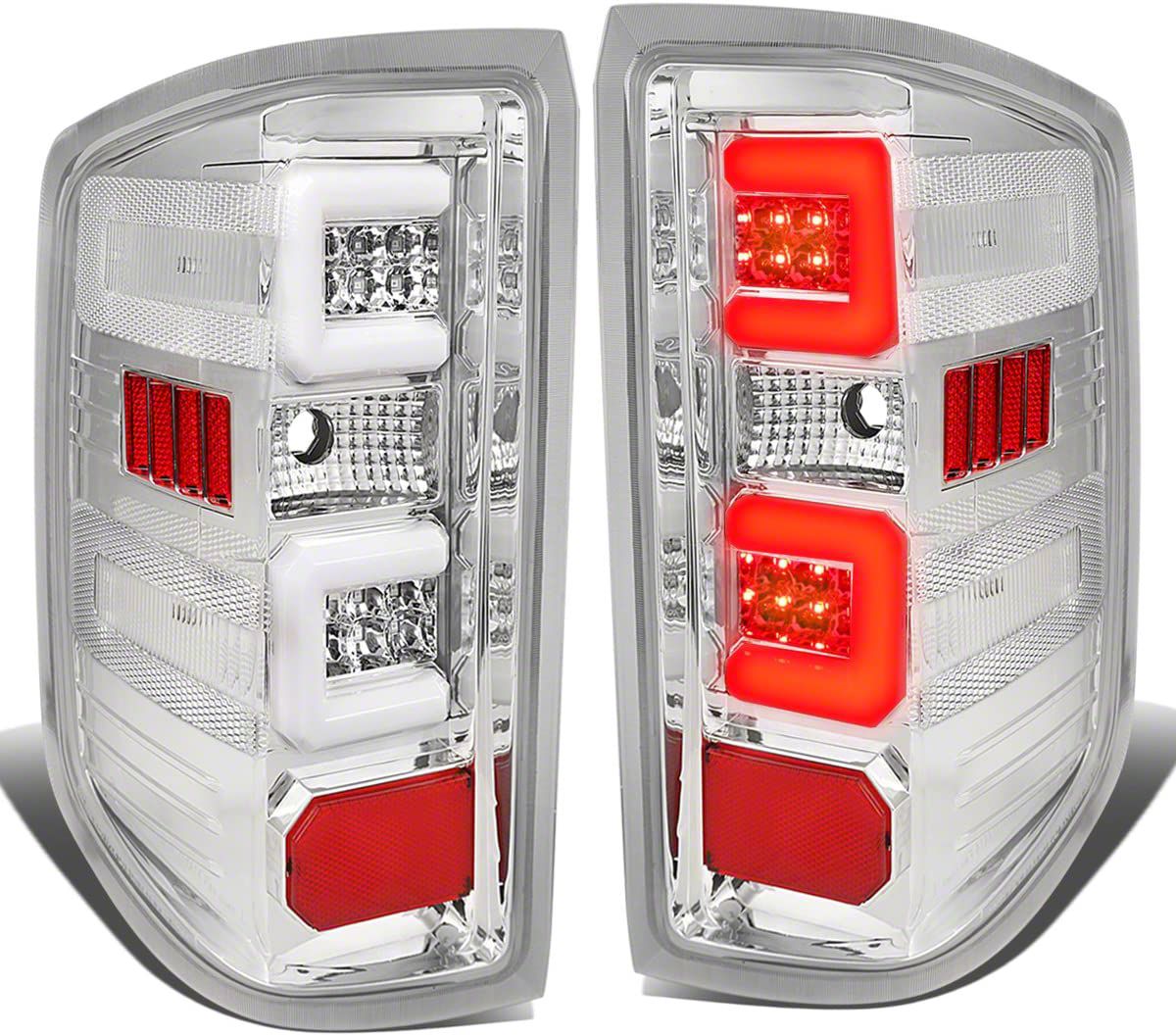 Safe and Stylish Tail Lights. These Dual C-Bar LED Tail Lights; Chrome instantly improve the safety and style surrounding your Silverado 3500. The sharper light will make those around you know what's happening and they'll look great at the back of your truck.