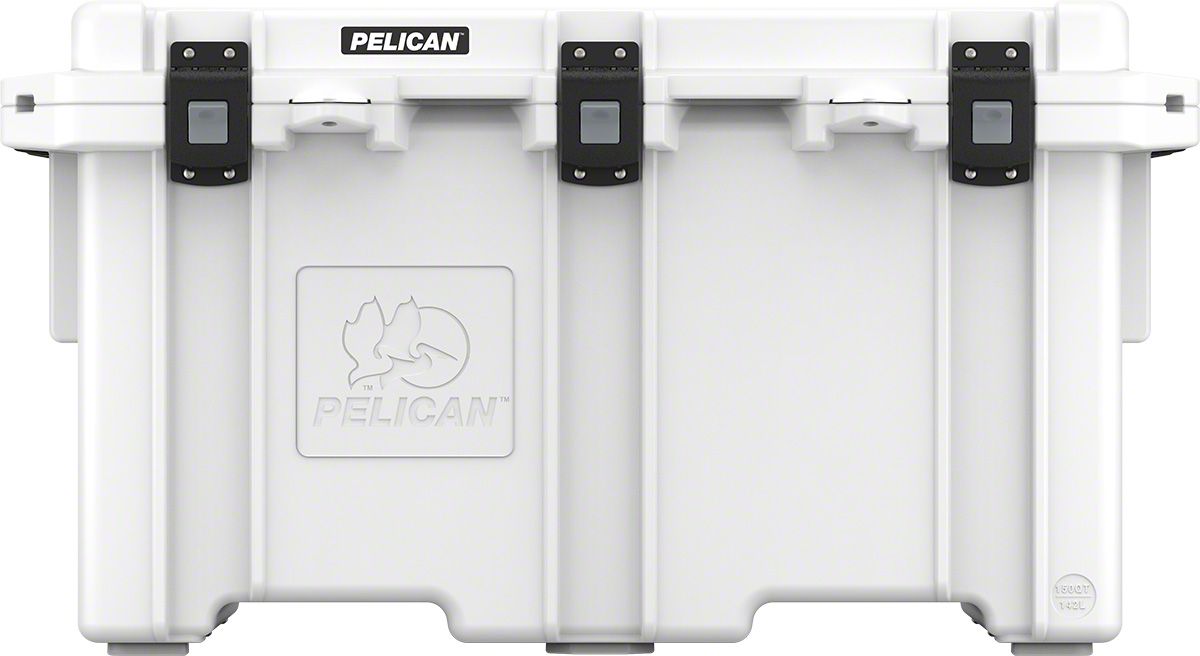 High-Capacity Cooler. The Elite Cooler offers a spacious capacity of 150 quarts, ideal for storing ample amounts of food and beverages. Designed with a clean white finish, it features a dual handle system for ease of transport and an integrated fish scale on the lid for added convenience.
