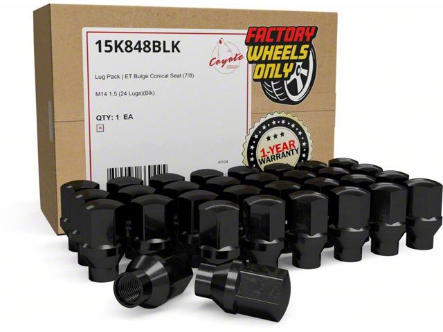 Application. This ET OEM Factory Style Black Lug Nut Kit (M14 x 1.5, Set of 32) fits 2011-2026 Chevrolet Silverado 3500 HD models.