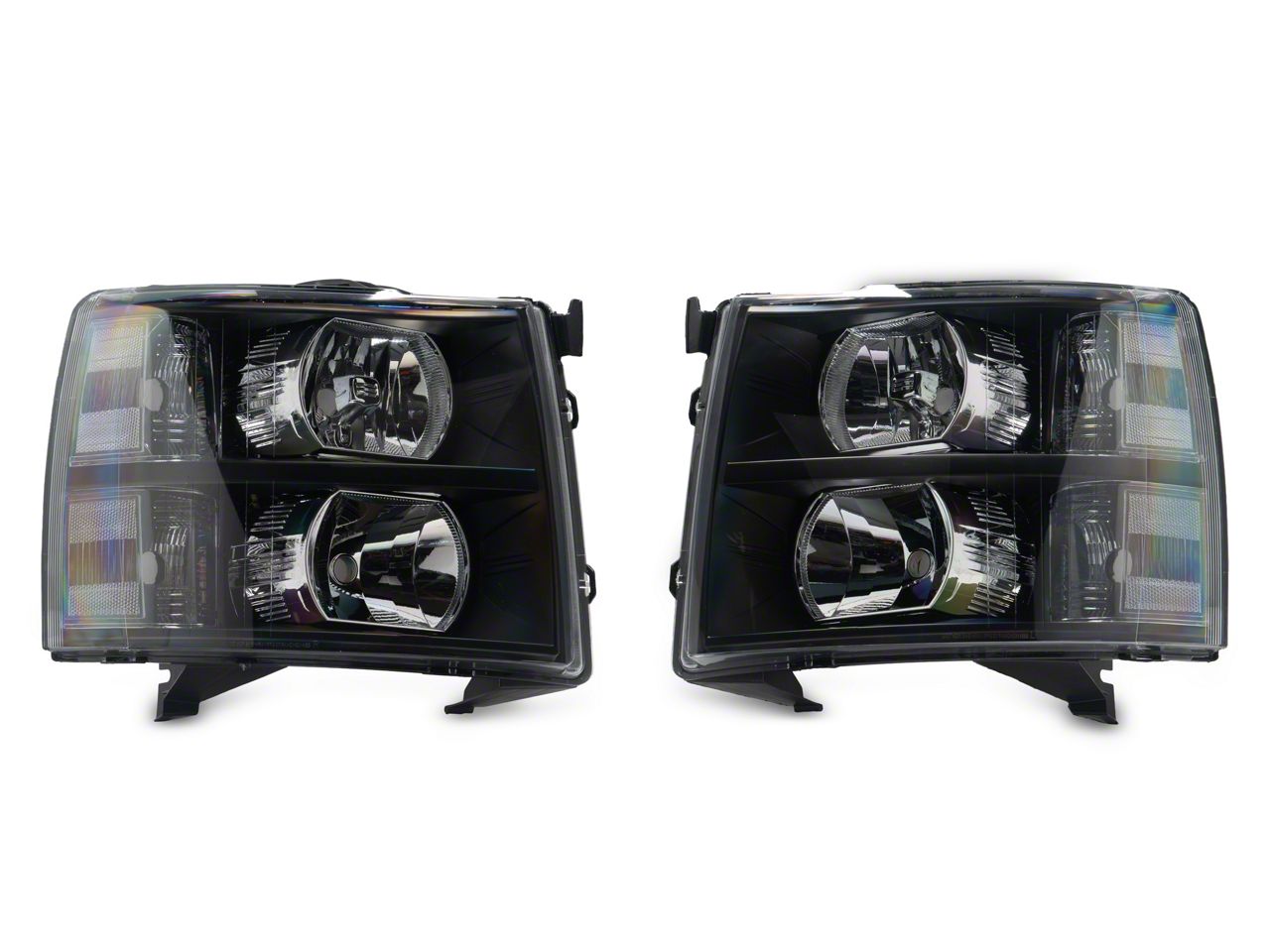 Application. This Factory Style Headlights with Clear Lens (Black Housing, Clear Lens) fits all 2007-2014 Chevrolet Silverado 3500 HD models.