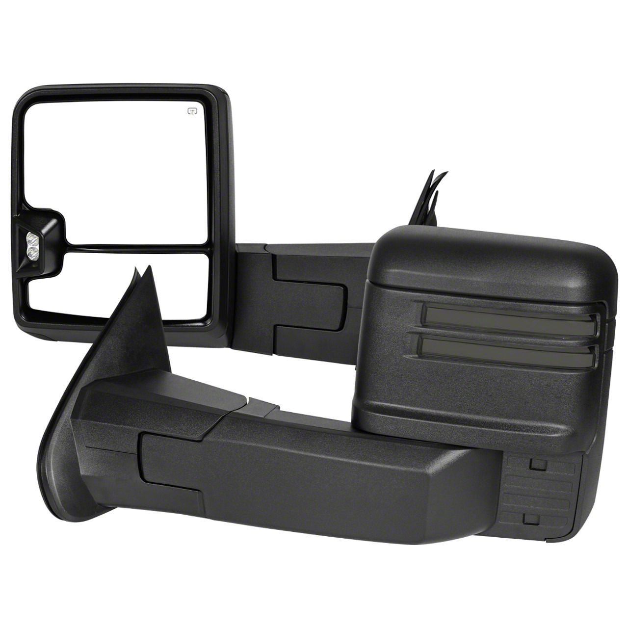 Reliable Mirror Upgrade. The Powered Heated Manual Fold Towing Mirrors with Smoked LED DRL, Turn Signal and Clearance Lights are designed to enhance visibility and functionality for your truck. These mirrors provide a modern, high-performance solution for towing, improving both safety and convenience. Ideal for drivers looking for increased mirror range and added lighting features, this set delivers dependable performance for a wide range of towing needs.