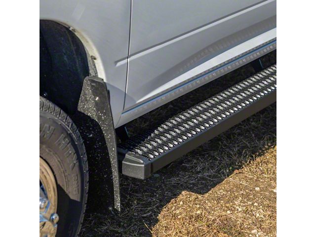 Pure Function. Grip Step Running Boards feature a 7-inch wide expanded metal tread design that provides excellent traction in all weather conditions. This unique expanded metal tread design allows dirt, mud, snow and more to pass through preventing messes from being tracked into your truck's interior. Grip Step Running Boards allow for easy entry in and out of your 2020-2026 Chevrolet Silverado 3500 HD Regular Cab while giving it a rugged appearance.